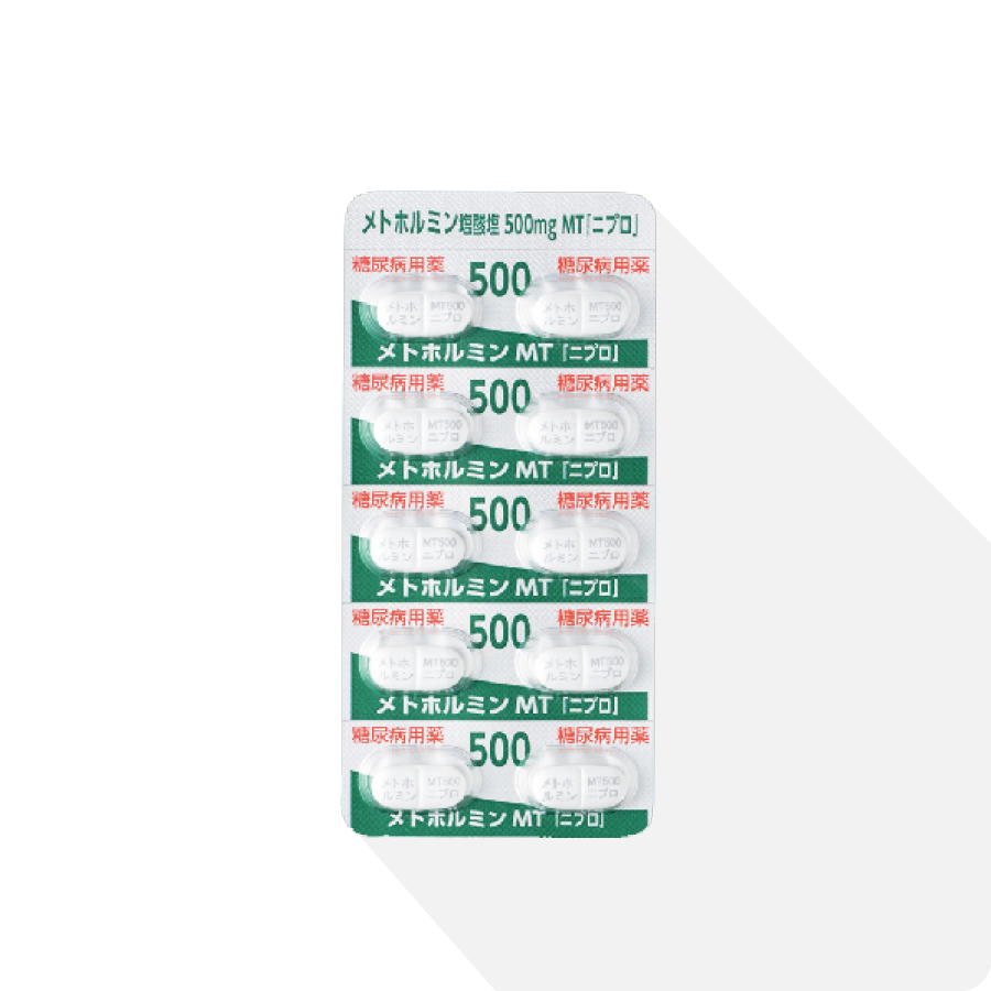 同一成分、同一性能の国内承認医薬品としてメトグルコがあります。本診療ではメトグルコのジェネリック医薬品であるメトホルミンを処方しております。